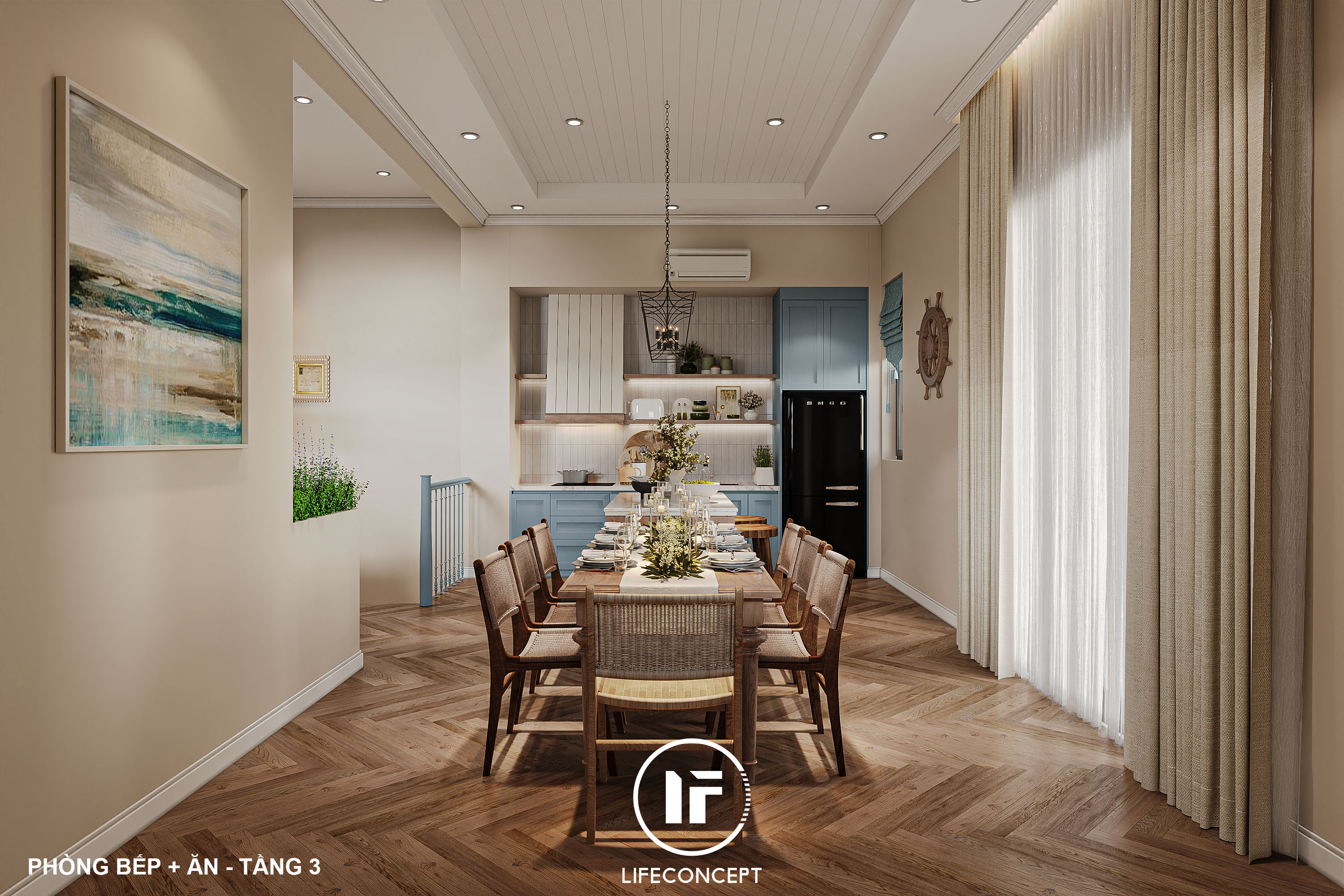 >Ý tưởng thiết kế: Sử dụng phong cách Farmhouse - kết hợp giữa nét cổ điển miền quê Châu Âu với sự tiện nghi của cuộc sống hiện đại