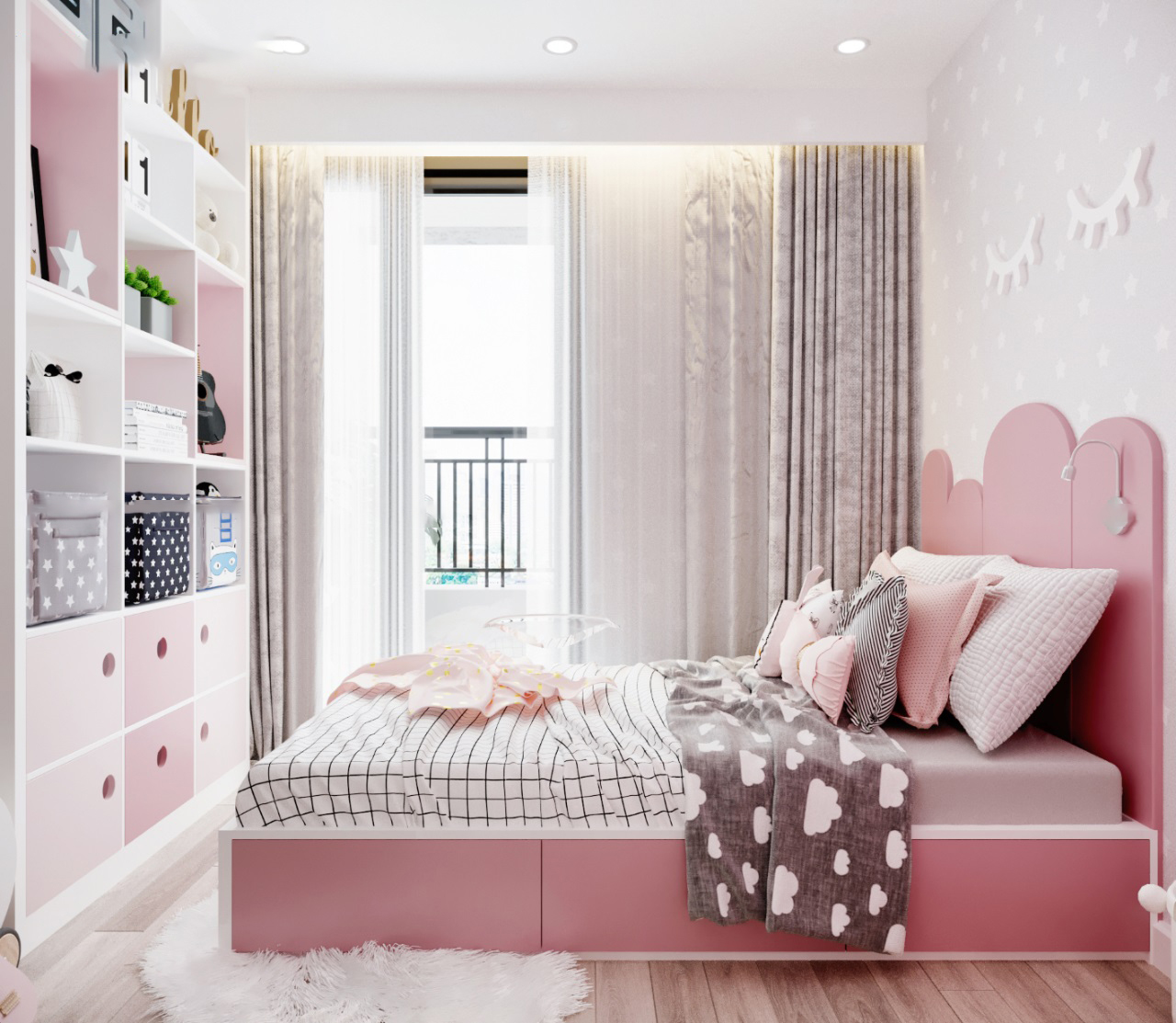 Ưu tiên giường tích hợp hộc kéo hoặc giường nâng để tăng lưu trữ. Tủ áo nên kịch trần nhằm tận dụng chiều cao và tạo cảm giác gọn gàng.