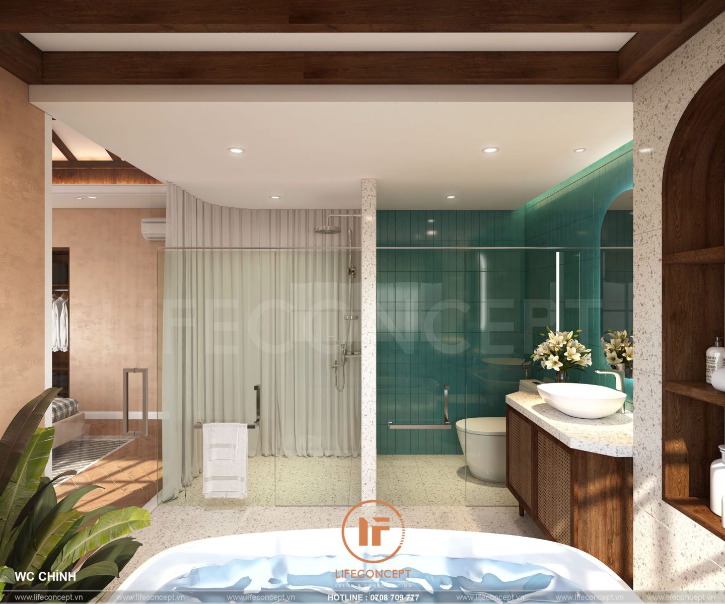 Tại LIFECONCEPT, chúng tôi luôn tối ưu hóa diện tích bằng cách phân chia khu vực khô - ướt rõ ràng: