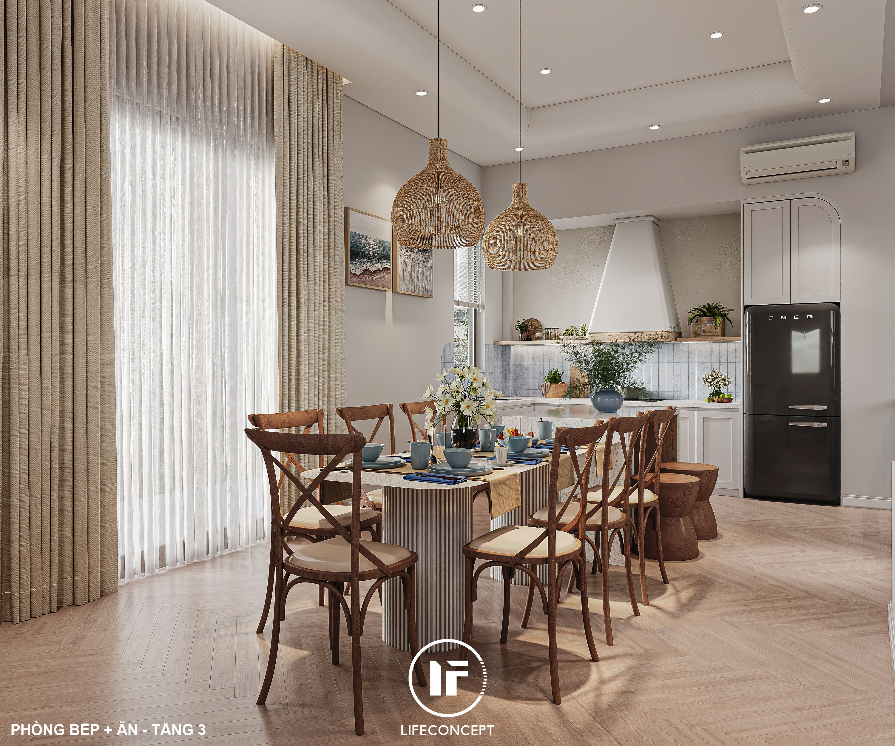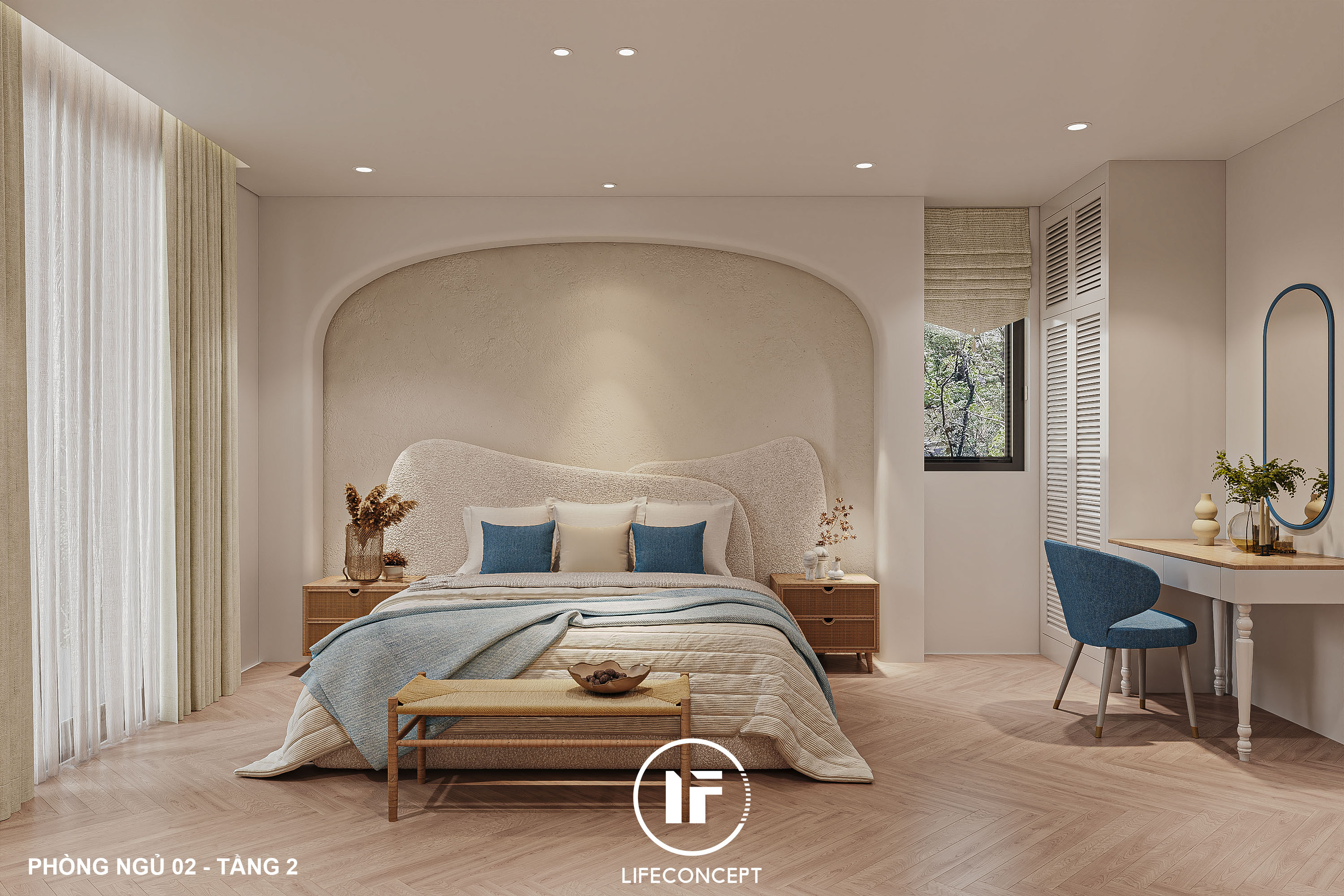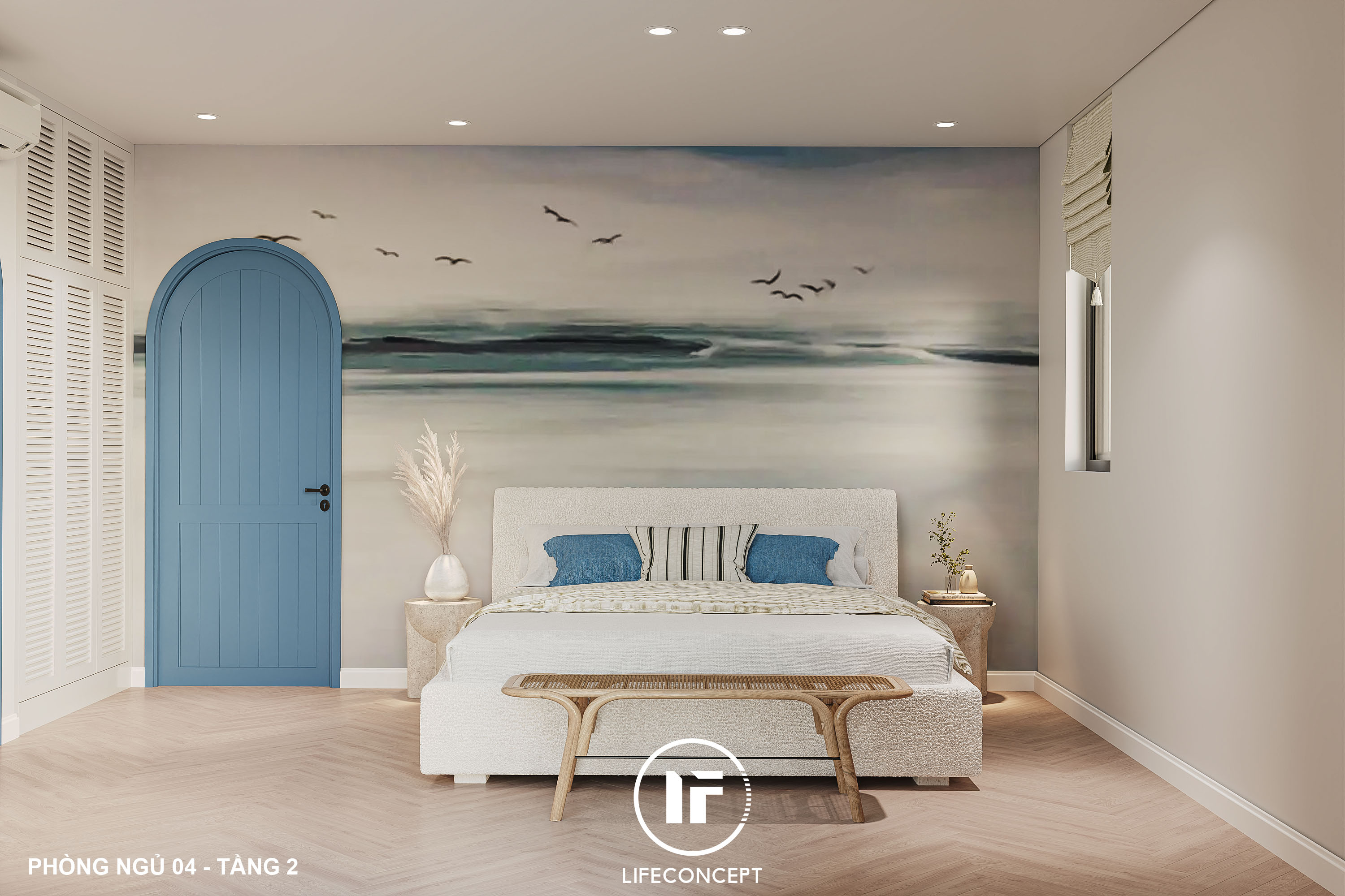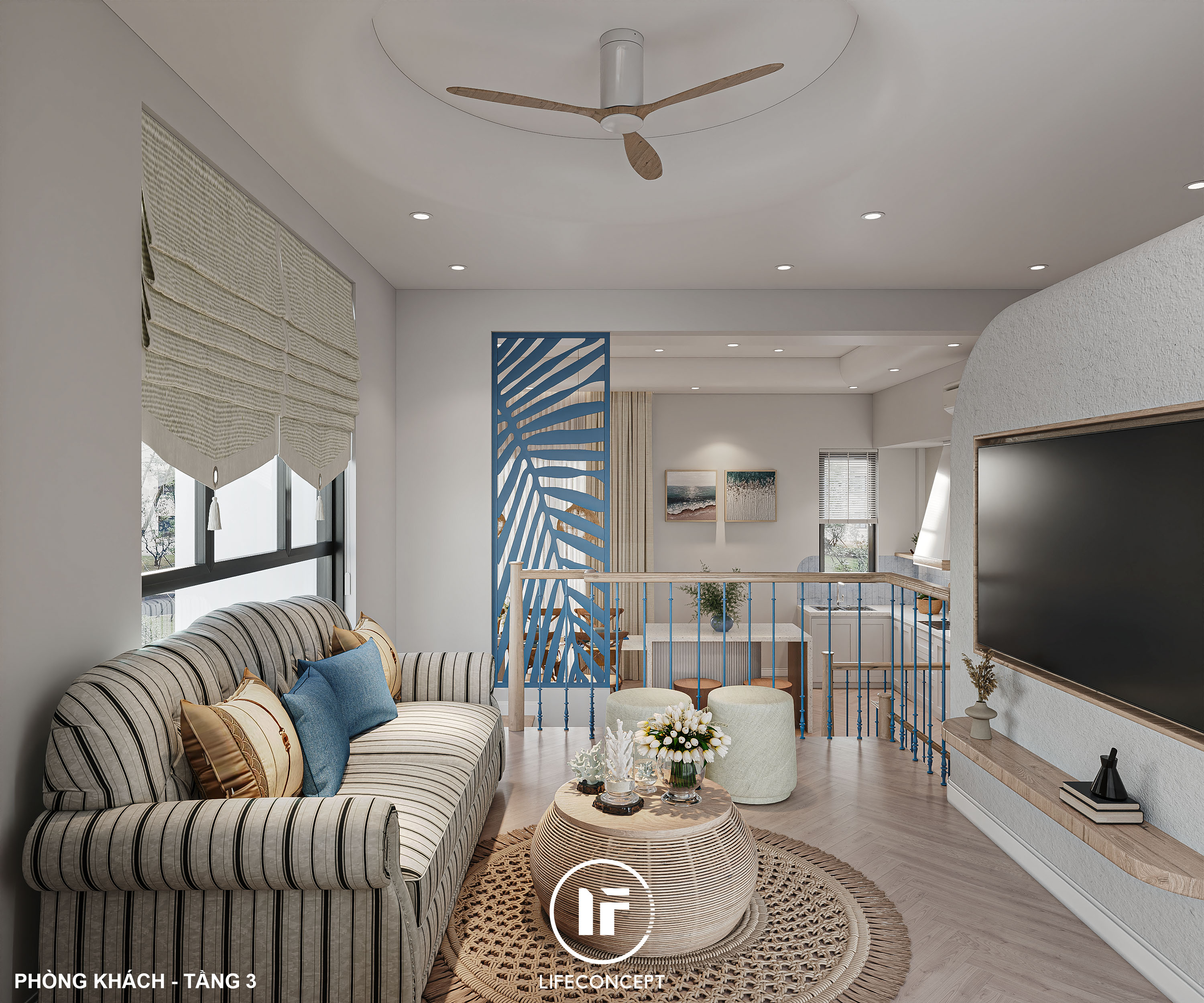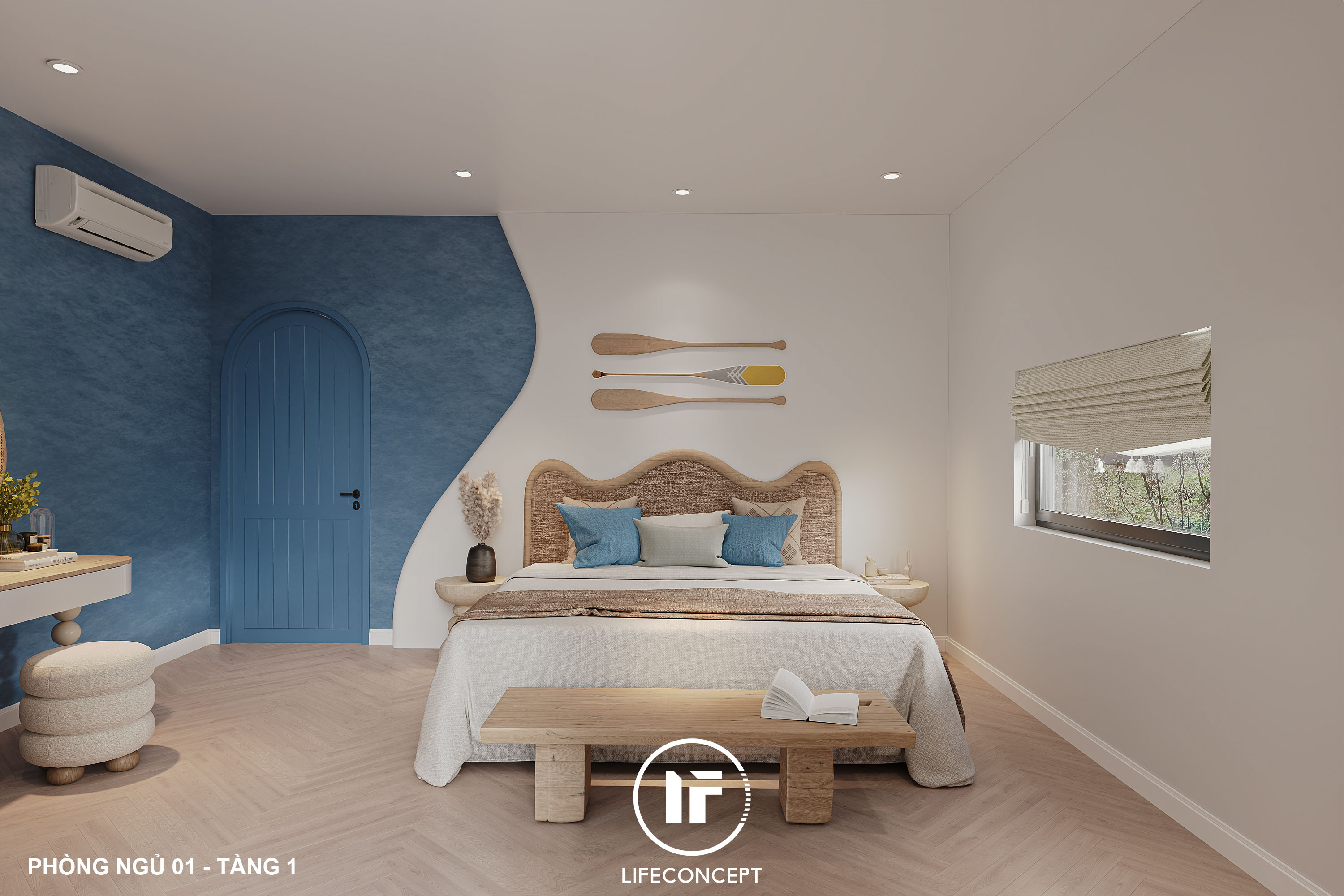 >Ý tưởng thiết kế: Phong cách Santorini hiện đại - Kết hợp tinh tế giữa vẻ đẹp truyền thống của hòn đảo Hy Lạp và những đường nét tối giản, tiện nghi của kiến trúc đương đại
