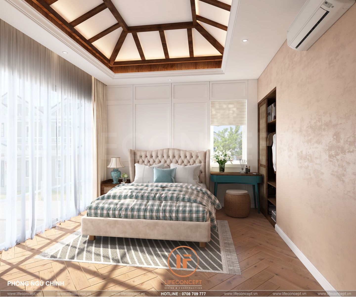 Thiết kế ưu tiên các ô cửa kính lớn, rèm mỏng nhẹ để đón trọn nguồn sáng tự nhiên, xóa nhòa ranh giới giữa bên trong và bên ngoài.
