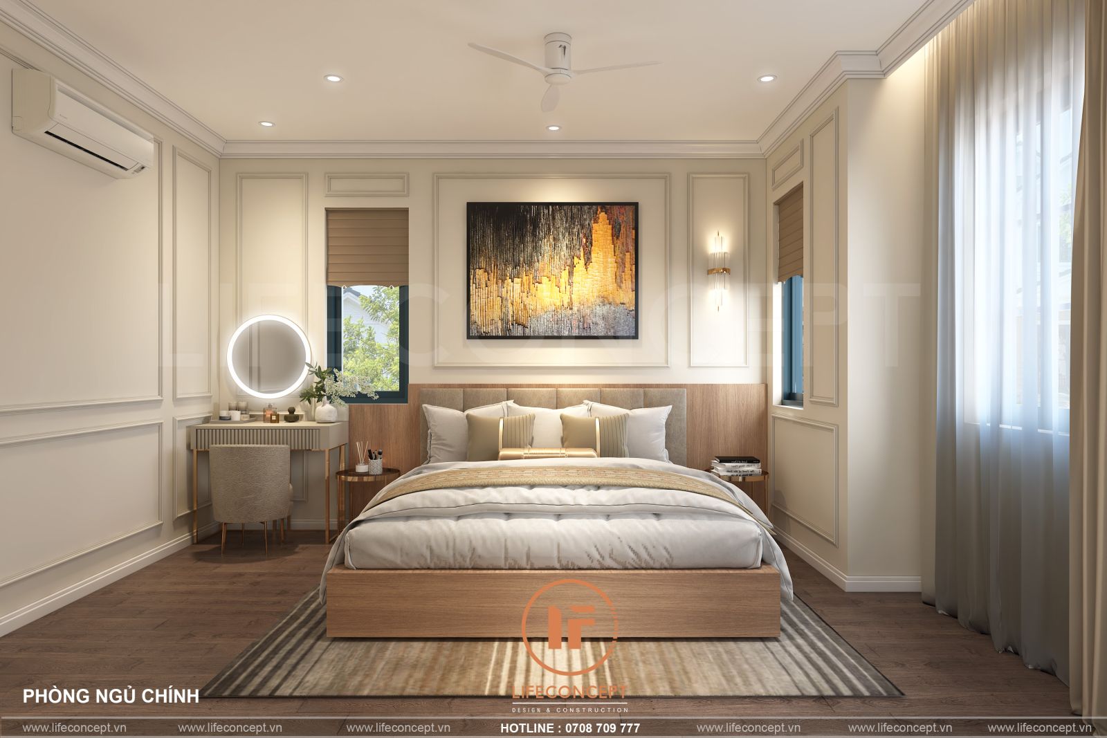 LIFECONCEPT áp dụng quy trình khép kín từ tư vấn, thiết kế 3D, sản xuất tại xưởng đến lắp đặt hoàn thiện. Khách hàng có thể tham khảo thêm các dự án thực tế tạibộ sưu tập thiết kế nội thất.