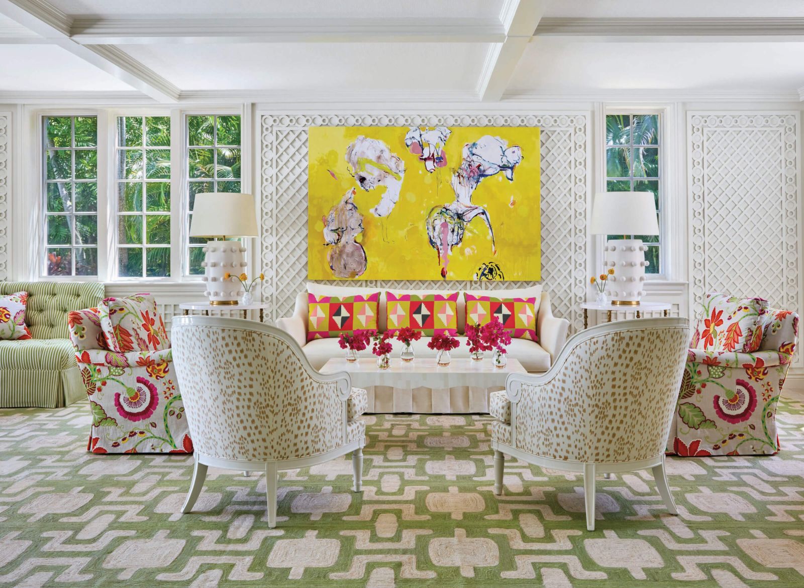 Palm Beach không dành cho sự trầm mặc. Các tông màu như hồng san hô, xanh ngọc bích, vàng nắng và trắng tinh khôi được sử dụng làm chủ đạo để tạo sự phấn chấn.
